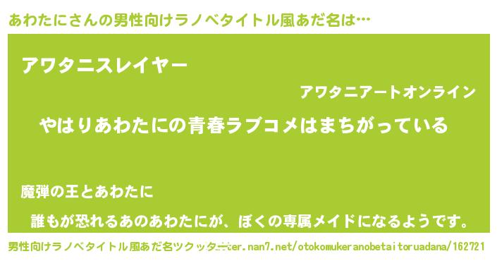 | 女子向けラノベタイトル風あだ名 | 『あわたに伯爵の花嫁』 |