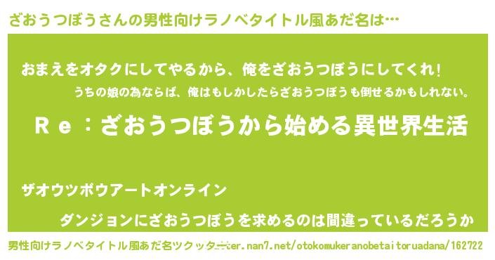 | 女子向けラノベタイトル風あだ名 | 『闇のざおうつぼう』 |
