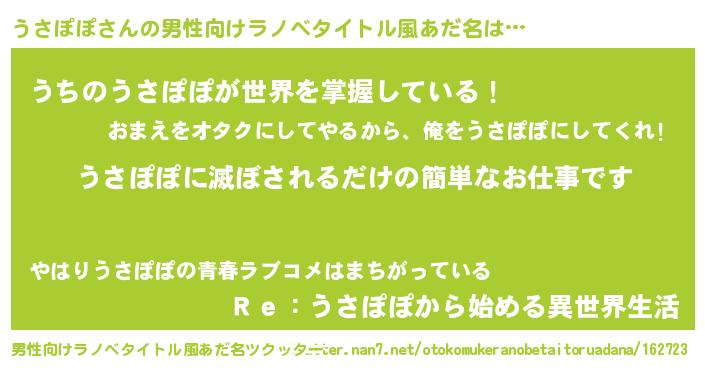 | 女子向けラノベタイトル風あだ名 | 『横柄うさぽぽと宰相陛下』 |