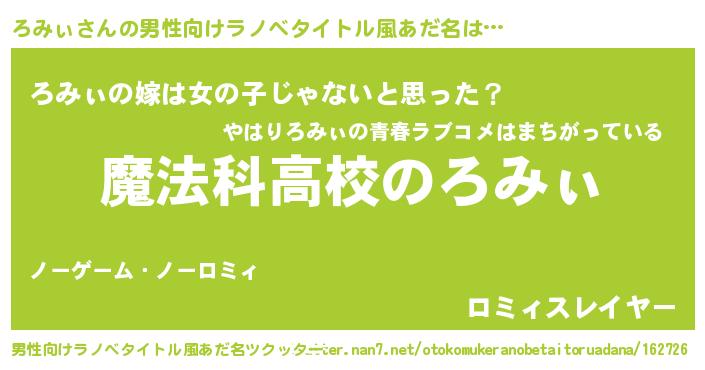 | 女子向けラノベタイトル風あだ名 | 『ろみぃなんてお断りですっ。』 |