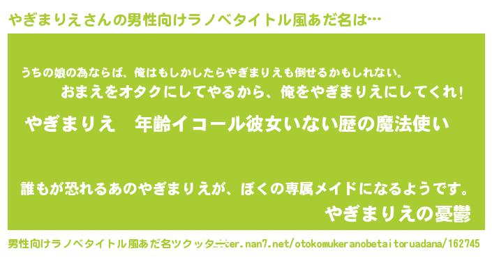 | 伝説のあだ名 | 『最強の陰陽師やぎまりえ』 |
