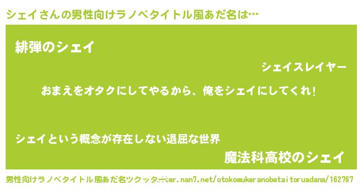| 女子向けラノベタイトル風あだ名 | 『シェイ恋絵巻』 |