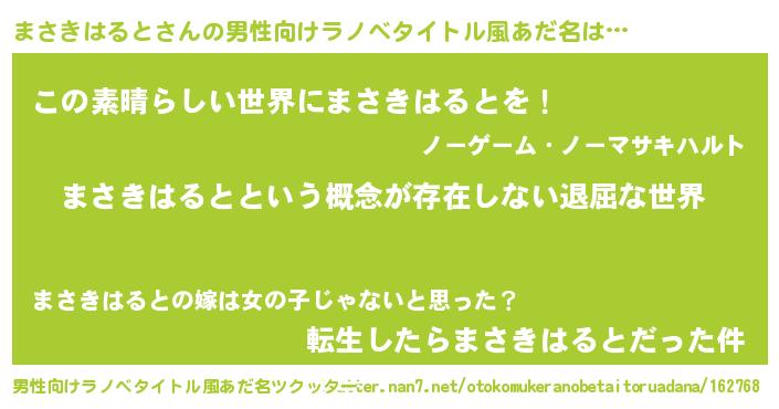 まさきはるとさんの男性向けラノベタイトル風あだ名をツクッター!