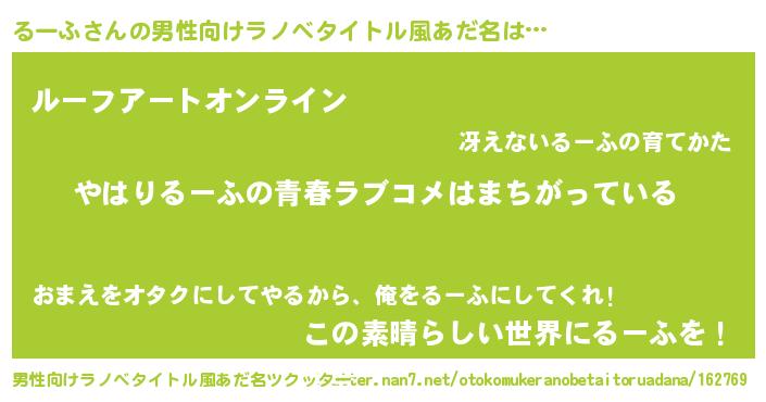 | 女子向けラノベタイトル風あだ名 | 『るーふの雑貨屋さん』 |