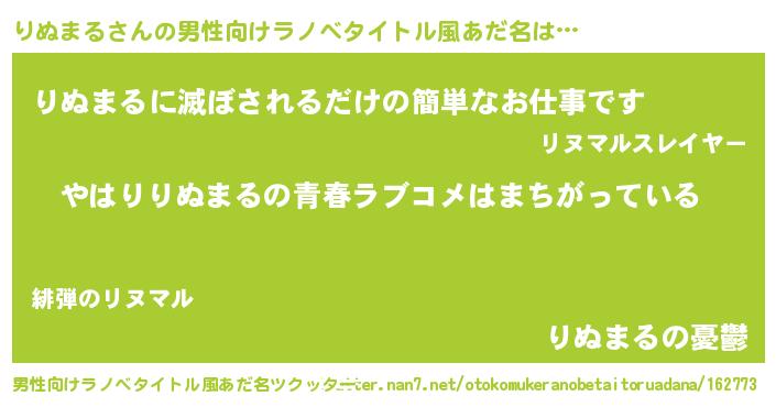 | ヒーロー風カッコイイあだ名 | 『ウルトラりぬまるマン』『仮面リヌダー』 |