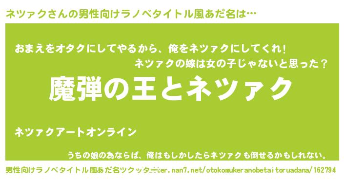 | 意味不明あだ名 | 『住所不定無職ネツァク(77歳)』 |