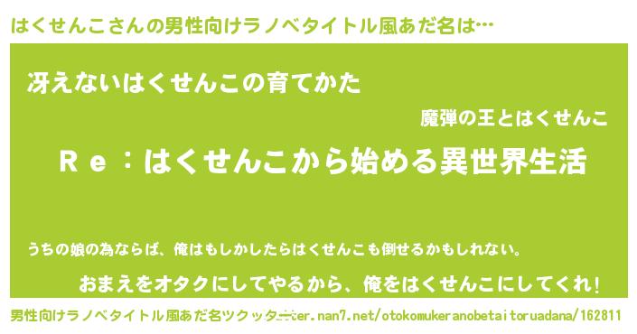 | 女子向けラノベタイトル風あだ名 | 『闇のはくせんこ』『はくせんこ恋絵巻』 |
