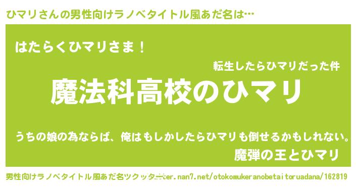 | 女子向けラノベタイトル風あだ名 | 『ひマリなんてお断りですっ。』 |