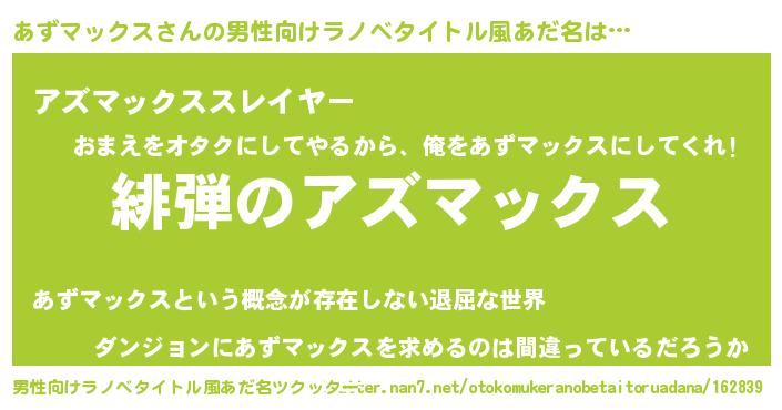 | 女子向けラノベタイトル風あだ名 | 『シンデレラあずマックス家の靴箱館』 |