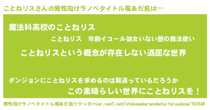 | 胡散臭い通販商品みたいなあだ名 | 『来世でも幸せになれる健康食品…その名も「ことねリス」』 |
