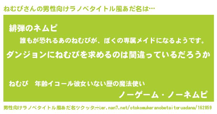 ねむぴさんの男性向けラノベタイトル風あだ名をツクッター!