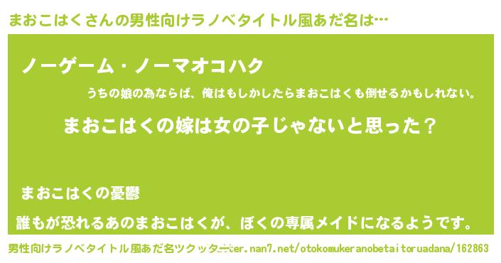 | ヘコむあだ名 | 『まおを』『まおこはく(爆)』 |