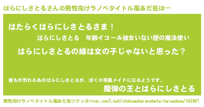 | 女子向けラノベタイトル風あだ名 | 『はらにしさとる様がみてる』 |