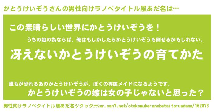 | 女子向けラノベタイトル風あだ名 | 『シンデレラかとうけいぞう家の靴箱館』 |