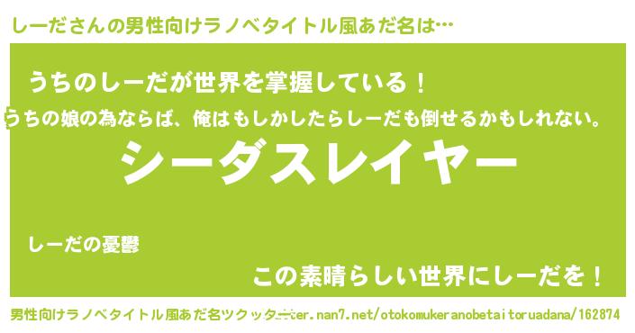 | ヒーロー風カッコイイあだ名 | 『仮面シーダー』『ウルトラしーだマン』 |