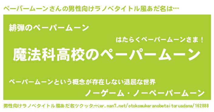 | 女子向けラノベタイトル風あだ名 | 『ペーパームーンなんてお断りですっ。』 |