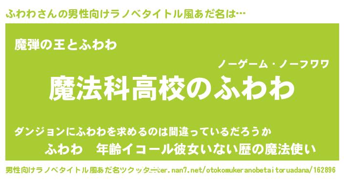 | 女子向けラノベタイトル風あだ名 | 『ふわわなんてお断りですっ。』 |
