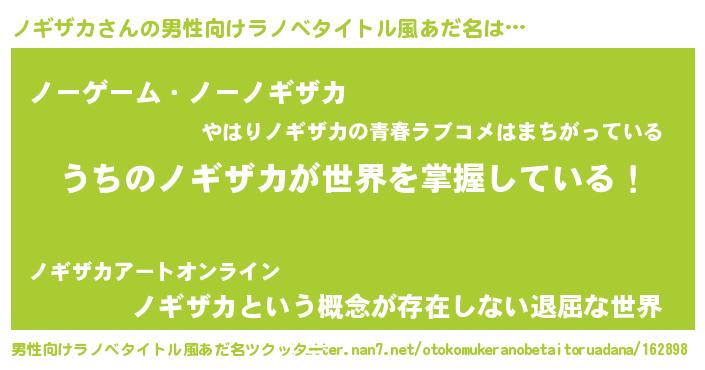 | 女子向けラノベタイトル風あだ名 | 『男装ノギザカの憂鬱な任務』 |