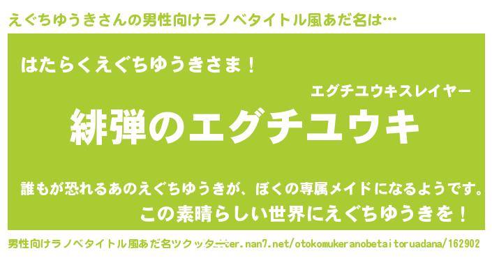| 意味不明あだ名 | 『住所不定無職えぐちゆうき(85歳)』 |