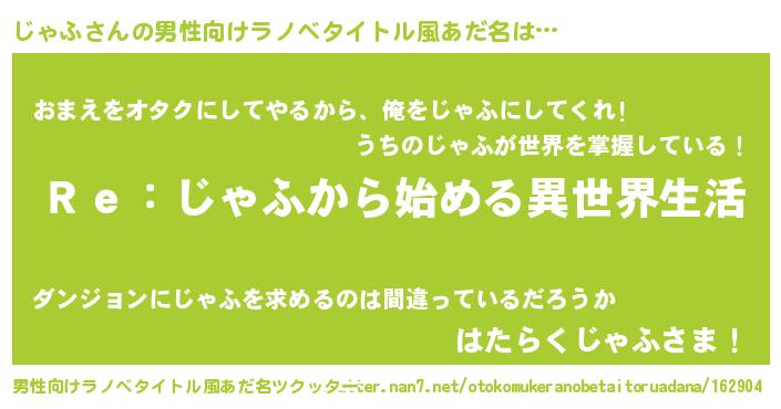じゃふさんの男性向けラノベタイトル風あだ名をツクッター!