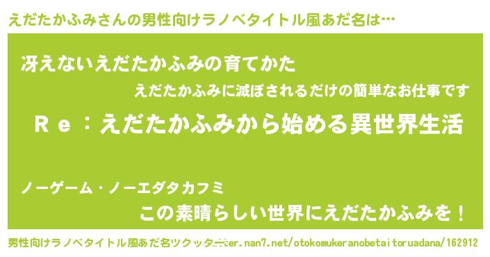 | 女子向けラノベタイトル風あだ名 | 『えだたかふみストレイドッグス』 |