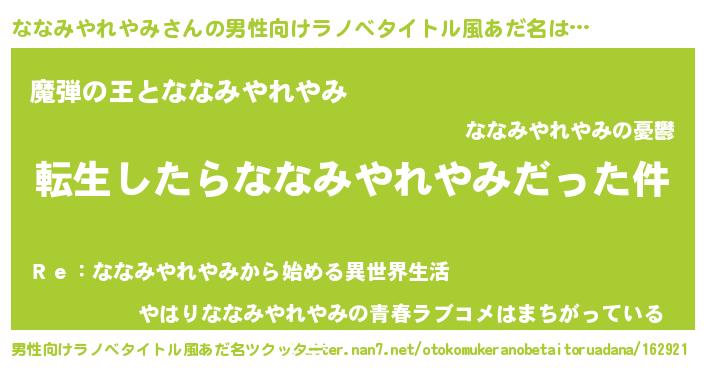 | 肩書あだ名 | 『ななみやれやみ少将』 |