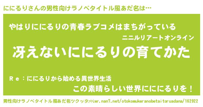 | 意味不明あだ名 | 『ににるりフォーエバー』『自称ににるり』 |