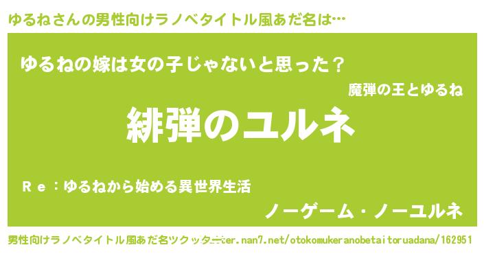 | ヒーロー風カッコイイあだ名 | 『魔戒騎士ユル』『天空の使者ゆるね』 |