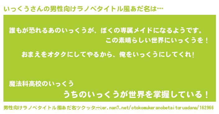 | ヒーロー風カッコイイあだ名 | 『正義の使者いっくう』『ネオイックウ』 |