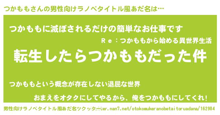 | ヘコむあだ名 | 『つかもも(苦笑)』『つかお』 |