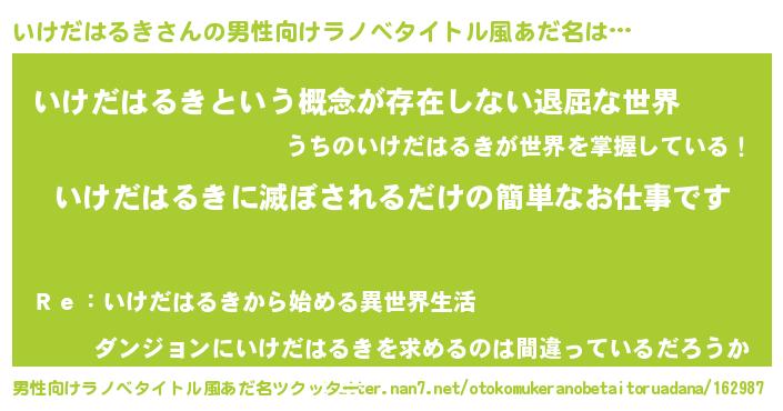 | 胡散臭い通販商品みたいなあだ名 | 『前代未聞の健康食品…その名も「いけだはるき」』 |