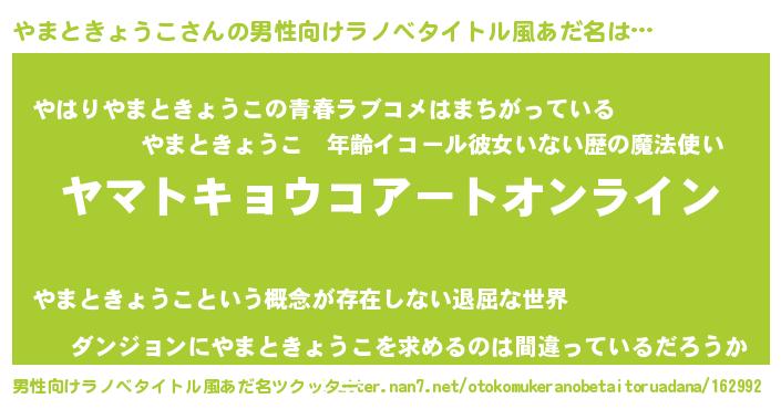 やまときょうこさんの男性向けラノベタイトル風あだ名をツクッター!