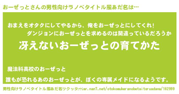| ヘコむあだ名 | 『おーぜっと(遠い目)』『おーを』 |