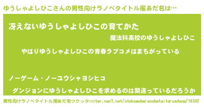 | 意味不明あだ名 | 『ゆうしゃよしひこフォーエバー』 |