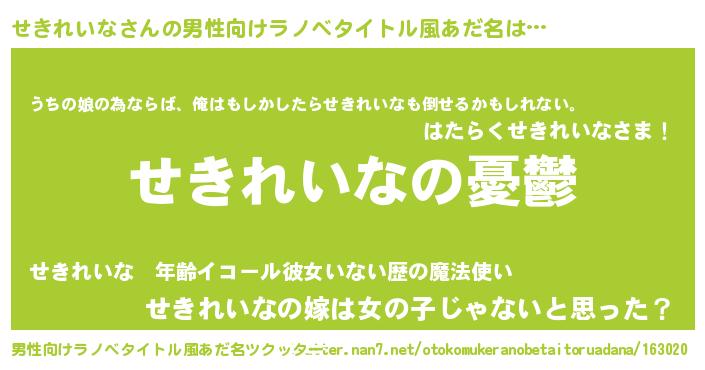 | 女子向けラノベタイトル風あだ名 | 『(仮)せきれいなのやんごとなき事情』 |