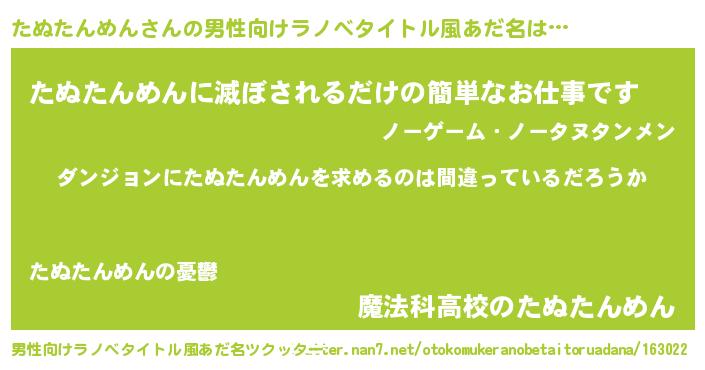 | 胡散臭い通販商品みたいなあだ名 | 『信頼と実績のネックレス…その名も「たぬたんめん」』 |