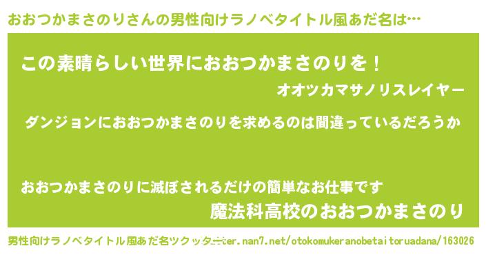 | 女子向けラノベタイトル風あだ名 | 『おおつかまさのりは平凡を望む』 |