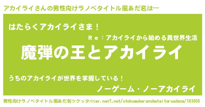 | 意味不明あだ名 | 『住所不定無職アカイライ(11歳)』 |