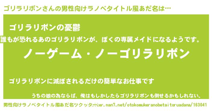 | 女子向けラノベタイトル風あだ名 | 『ゴリラリボン恋絵巻』 |