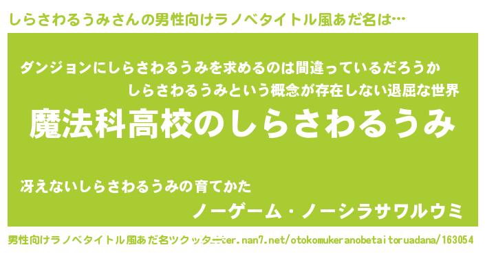 | 女子向けラノベタイトル風あだ名 | 『しらさわるうみなんてお断りですっ。』 |