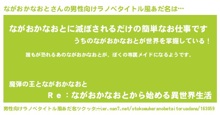 | 女子向けラノベタイトル風あだ名 | 『ながおかなおとの契約王妃』 |