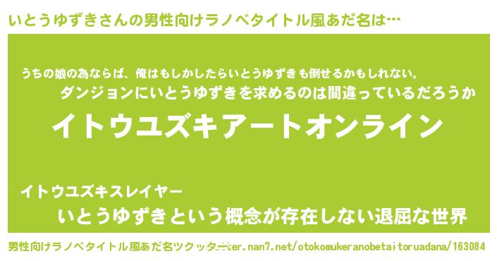 | 胡散臭い通販商品みたいなあだ名 | 『億万長者になれるブレスレット…その名も「いとうゆずき」』 |