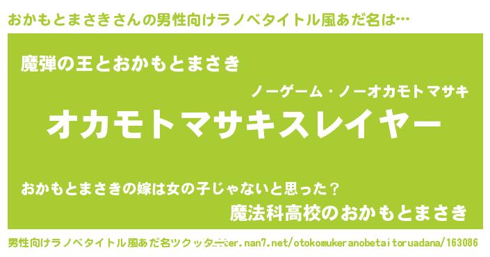 | 女子向けラノベタイトル風あだ名 | 『婚約破棄系悪役おかもとまさきに転生したので、保身に走りました。』 |