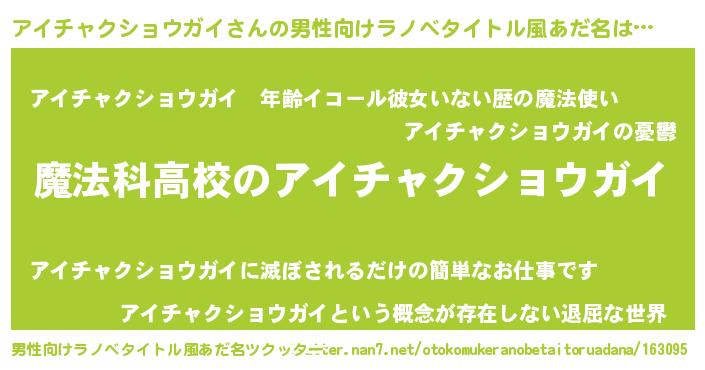 | 女子向けラノベタイトル風あだ名 | 『アイチャクショウガイアンティーク』 |