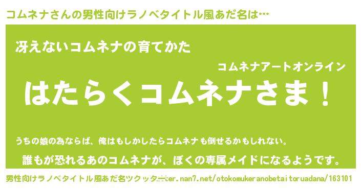 | ヒーロー風カッコイイあだ名 | 『ネオコムネナ』『スーパーコムネナ』 |