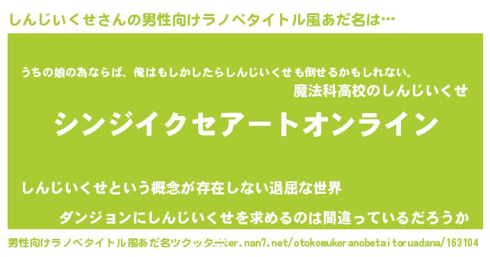 | 女子向けラノベタイトル風あだ名 | 『しんじいくせ姫と円卓の騎士』 |