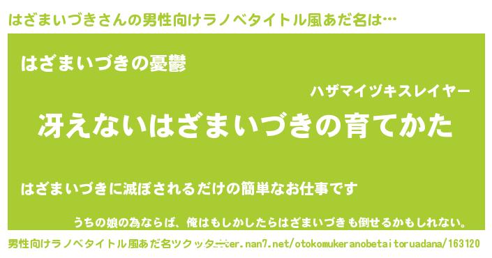 | ヒーロー風カッコイイあだ名 | 『スーパーハザマイヅキ』『銀牙騎士ハザ』 |