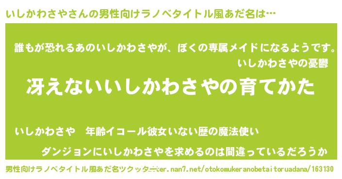 | ヒーロー風カッコイイあだ名 | 『ネオイシカワサヤ』『幻影騎士イシ』 |