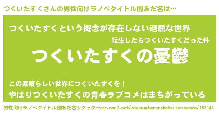 つくいたすくさんの男性向けラノベタイトル風あだ名をツクッター!
