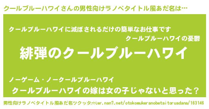 | 女子向けラノベタイトル風あだ名 | 『シンデレラクールブルーハワイ家の靴箱館』 |